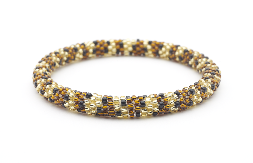 This glass beaded Leopard bracelet was handmade by a skilled artisan in Nepal. Sashka Co. bracelets roll over any size hand and retract to the size of your wrist. Skill, love and the World's finest glass beads go into each bracelet.